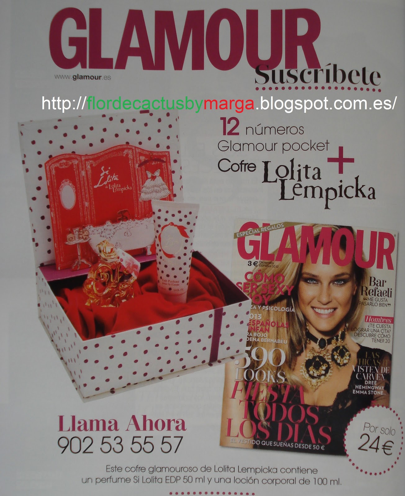 Si os interesa suscribiros a la revista, está en vigor la promoción de 12 números más un cofre de Lolita Lempicka por 24€. Contiene un perfume Si Lolita de 50 ml. y una loción corporal de 100ml.