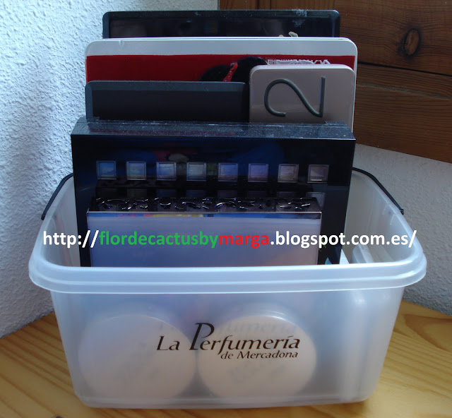 Antes que nada, deciros que ya le he encontrado utilidad a la cestita que me dieron en Mercadona, si no sabes de lo que hablo pincha aqui y lo sabrás!!. La estoy utilizando como organizador de paletas y si no te lo crees, mira, mira!!